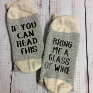 Bring me a Glass of Wine, If you can read this. Humour socks, Great stocking stuffers